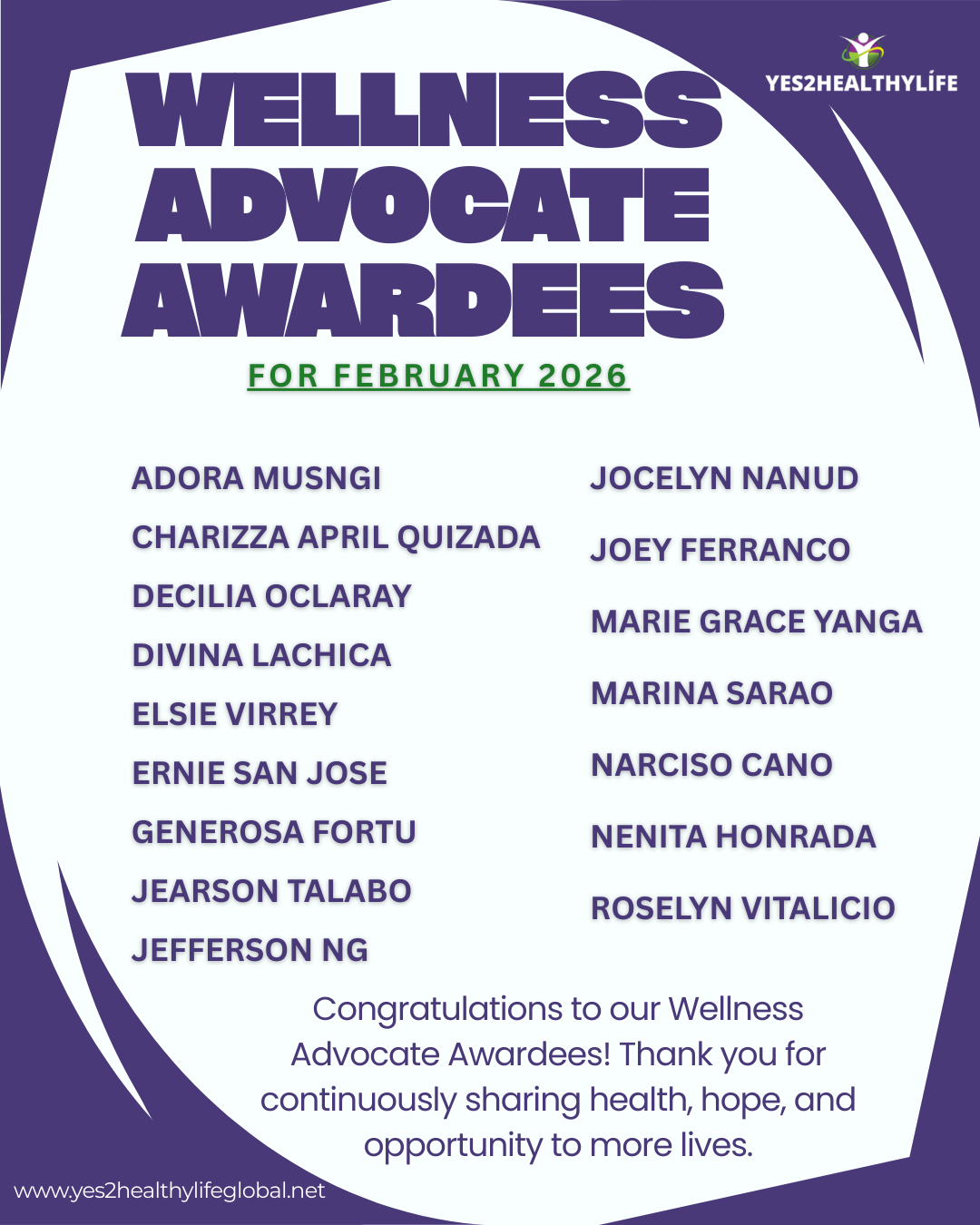 FEBRUARY 2026 AWARDEES
