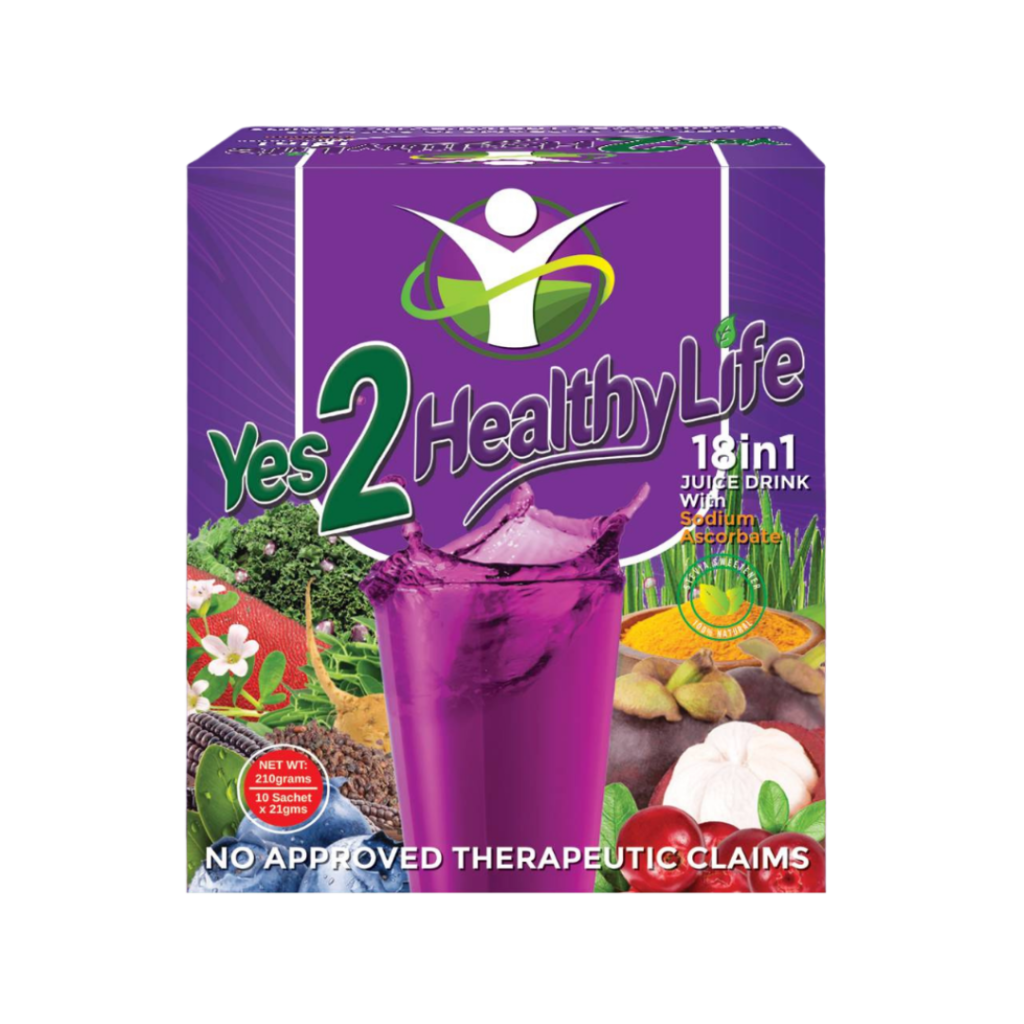 YES2HEALTHYLIFE JUICE DRINK 18 IN 1 MIX WITH SODIUM ASCORBATE is a premium wellness drink formulated to help support daily nutrition and overall well-being. This nutrient-rich blend contains plant-based compounds, antioxidants, and essential nutrients that help complement your daily nutritional intake.