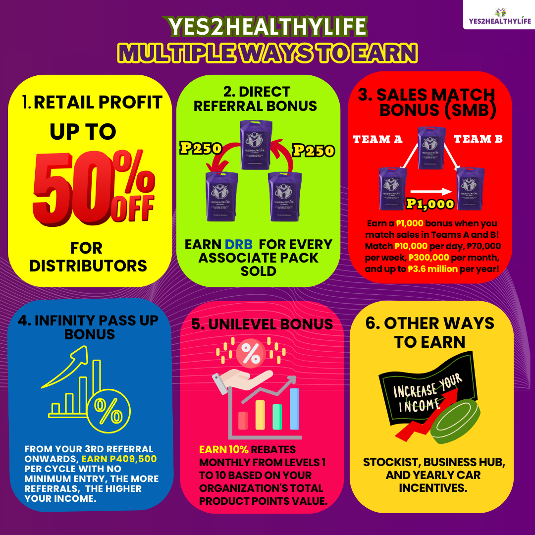 THESE ARE THE MULTIPLE WAYS TO EARN WITH YES2HEALTHYLIFE